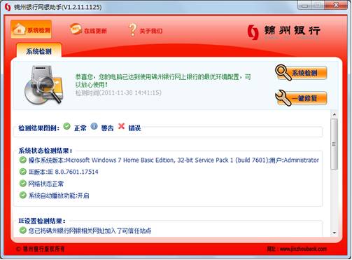 锦州银行所有个人网银客户和企业网银客户均可下载、使用网银助手。